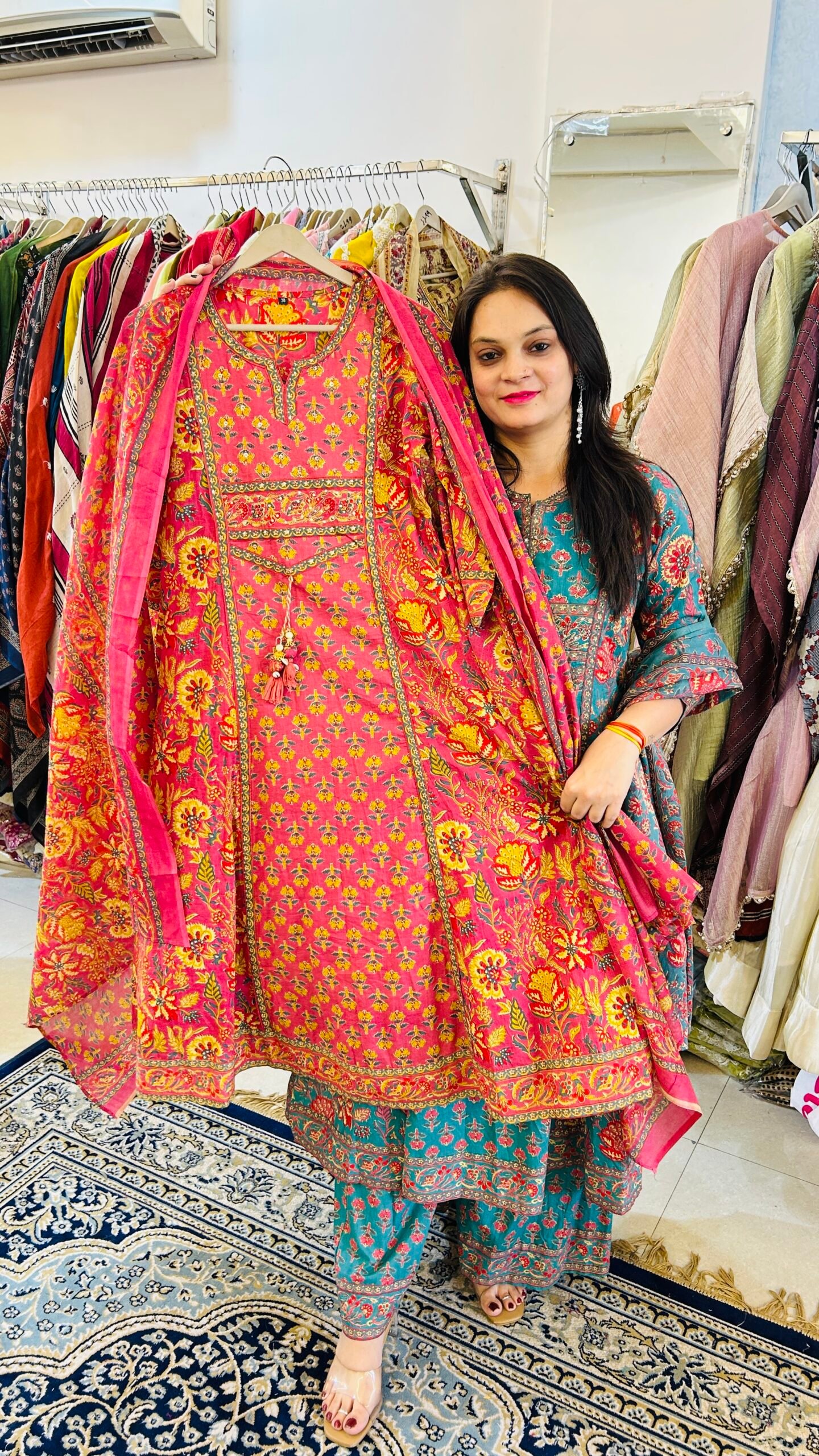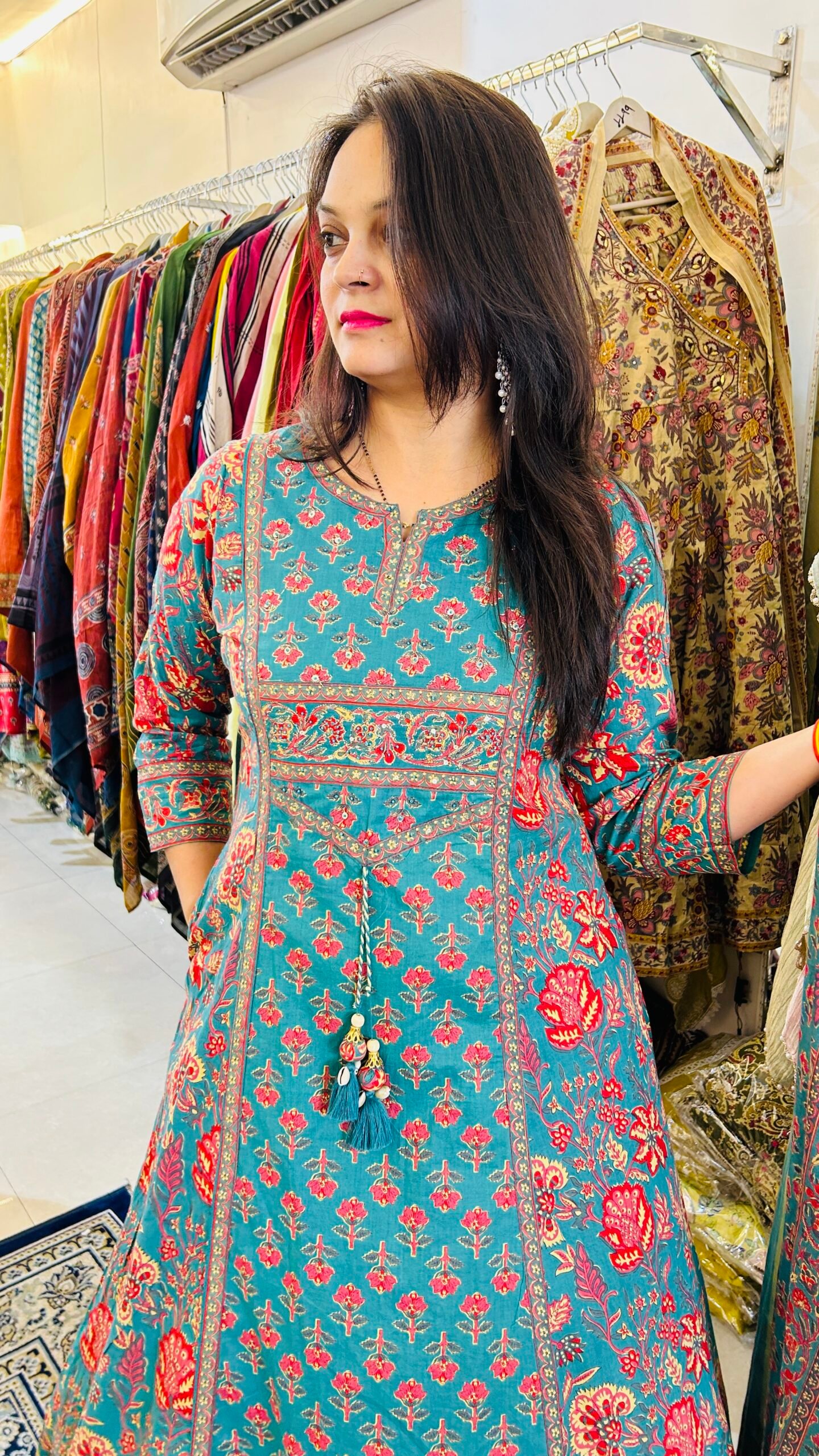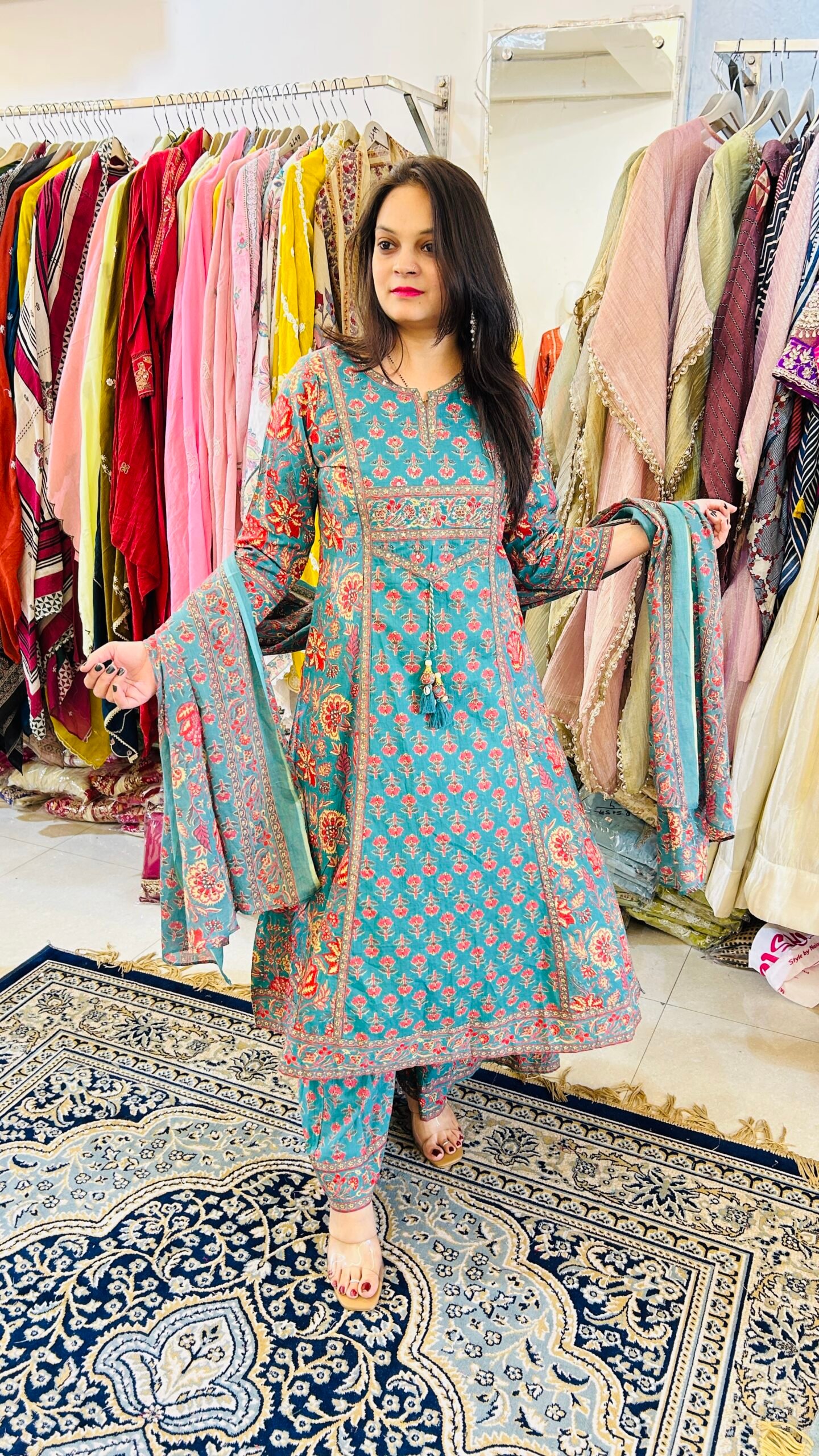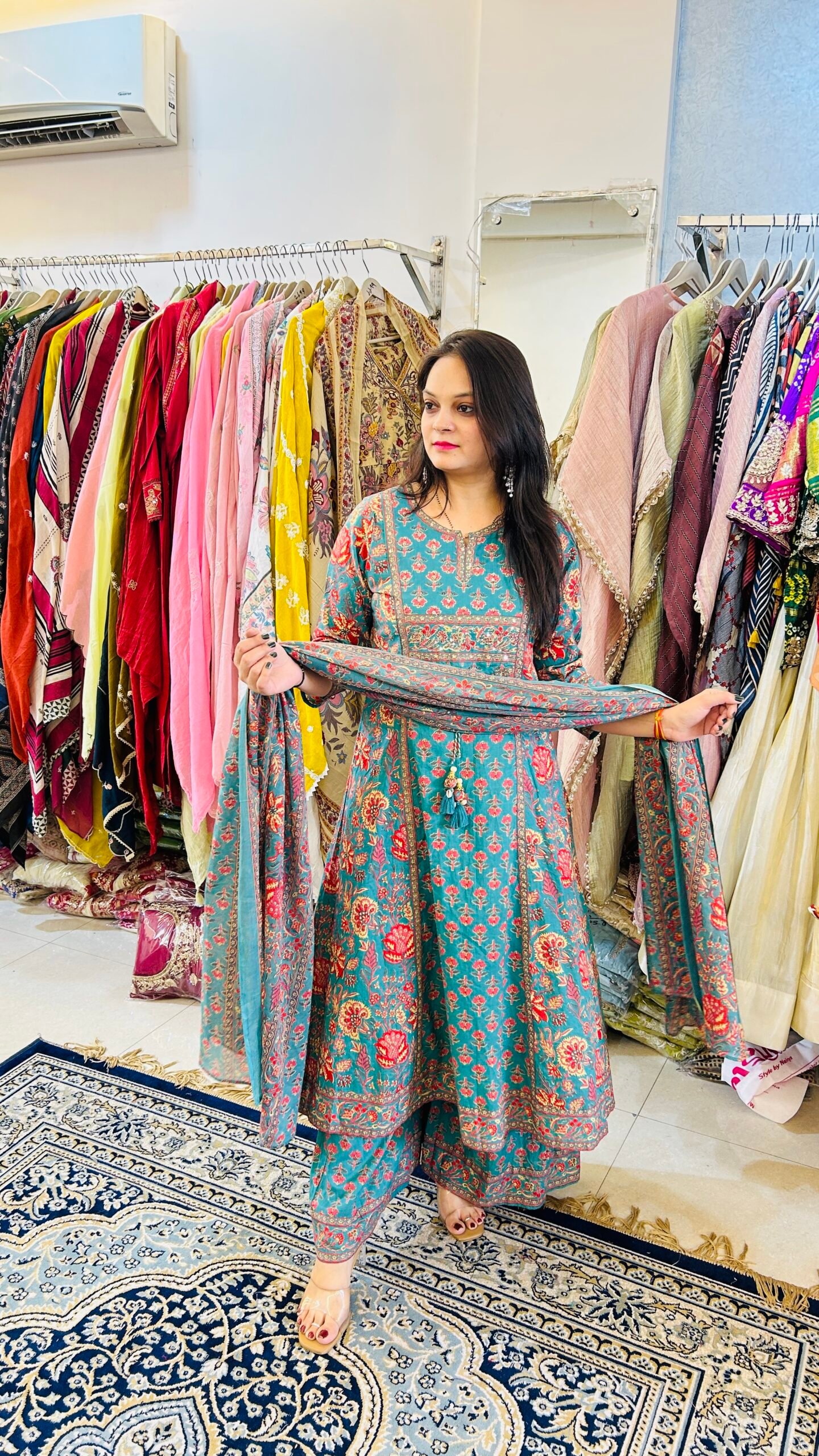 Style it with white pearls and silver juttis for a complete Jaipur look.