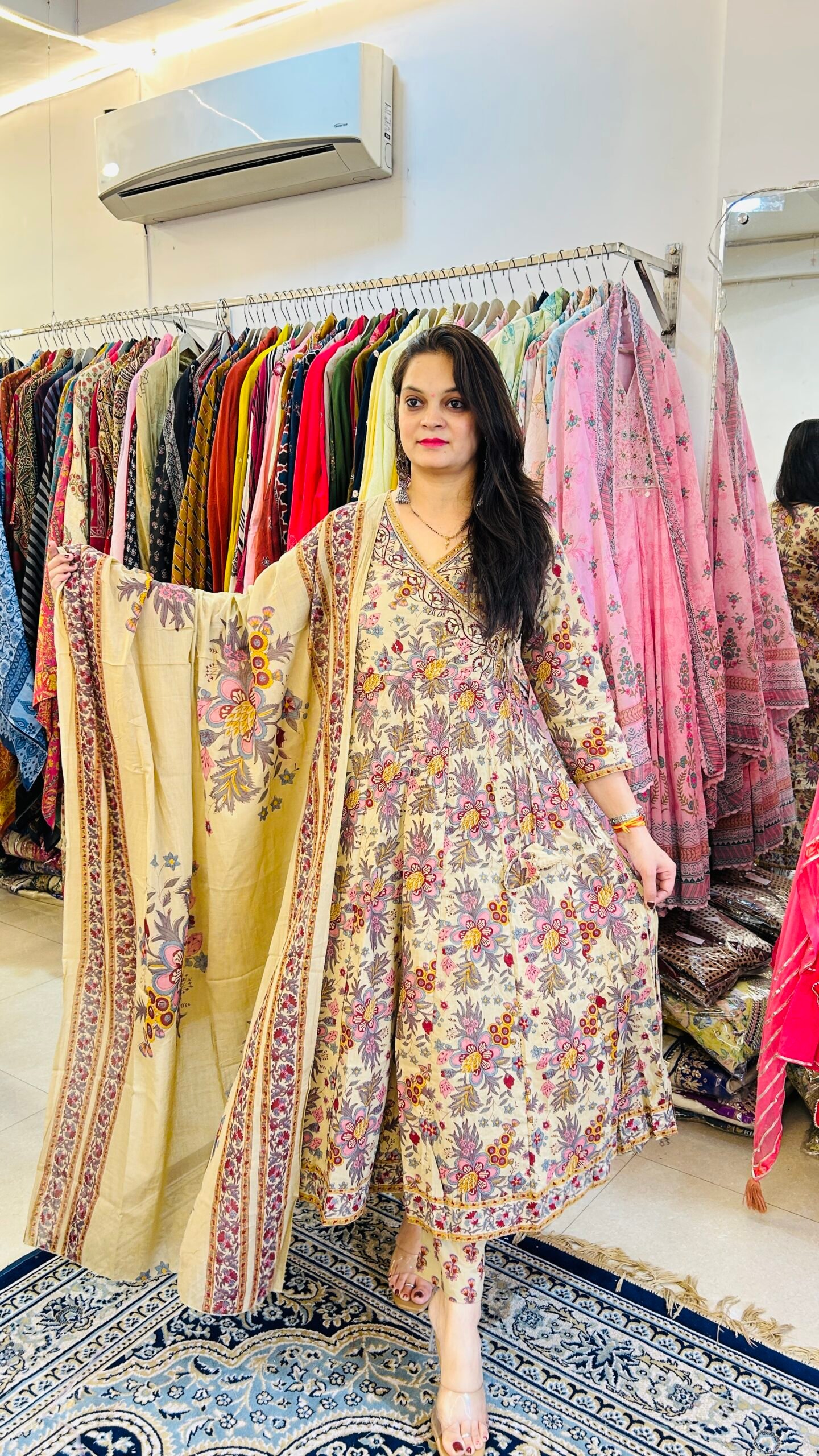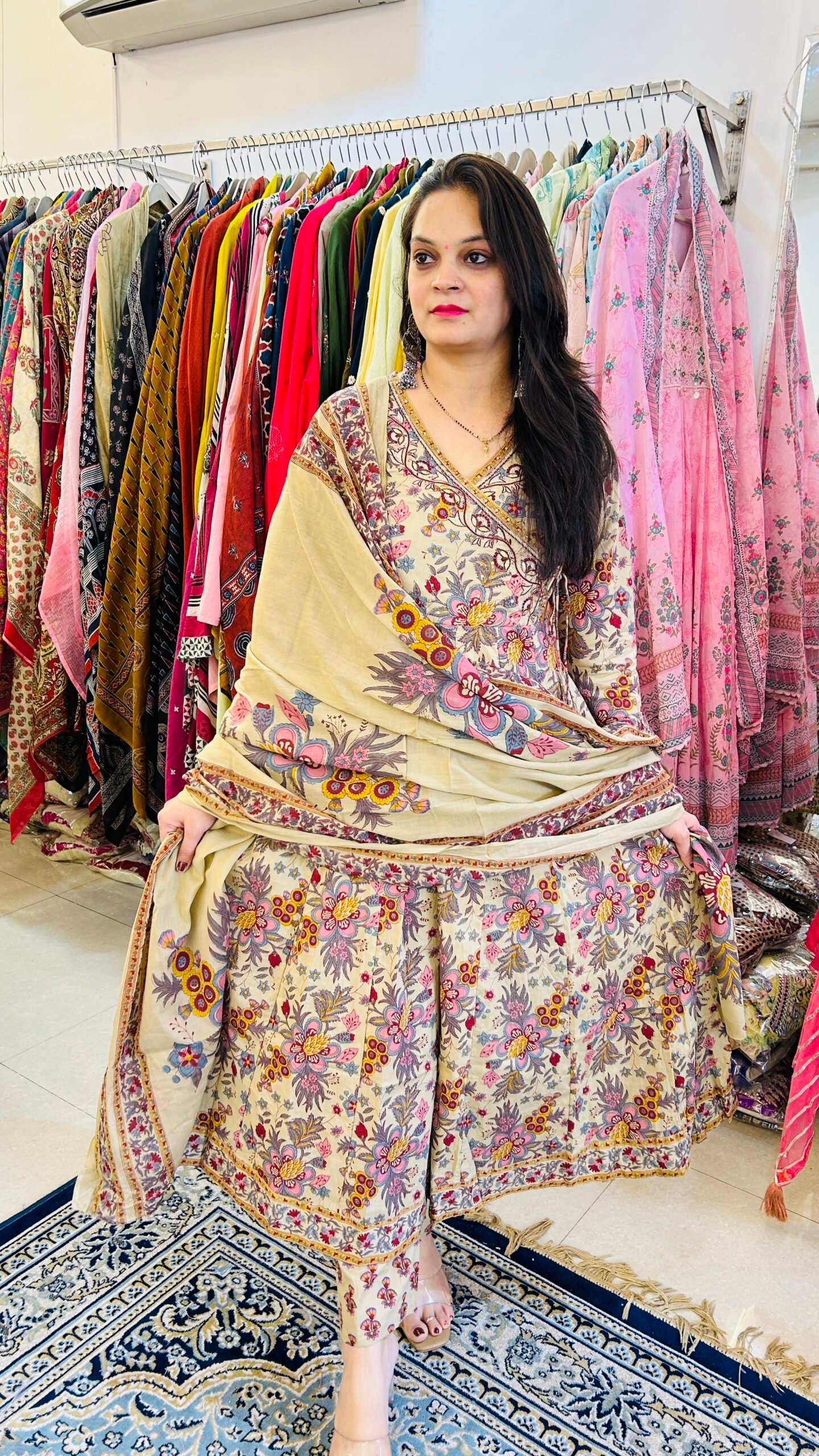 • Pair with silver Kolhapuri chappals + oxidised jhumkas for a classic desi festive look