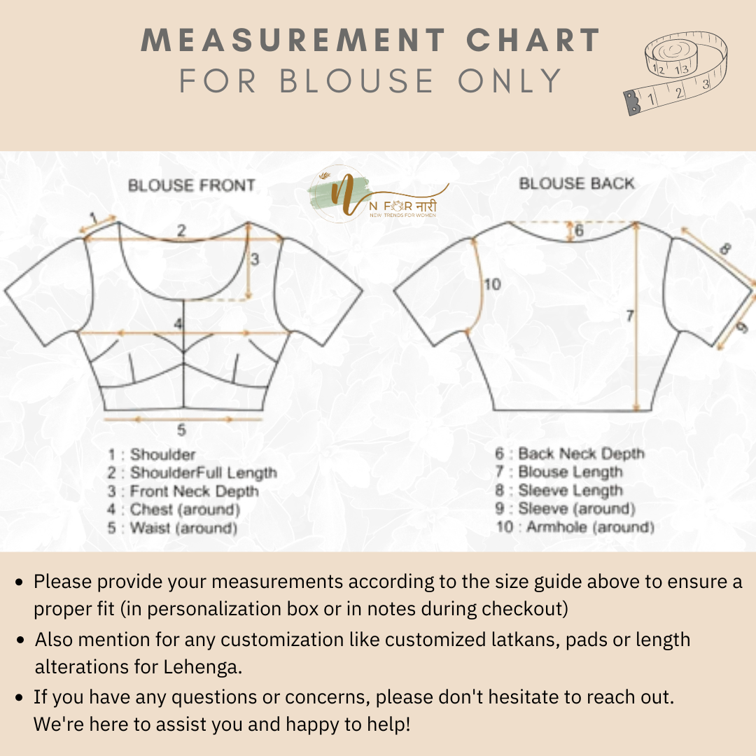 • Blouse Style: Sleeveless / Short Sleeve / Full Sleeve / Off-shoulder (Customizable)