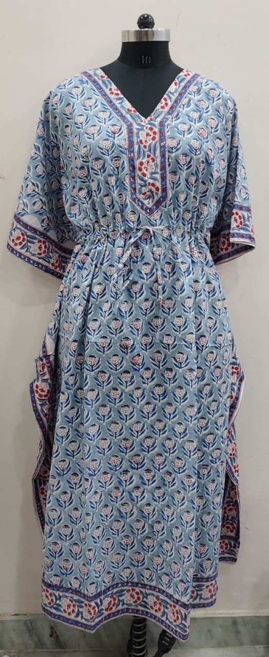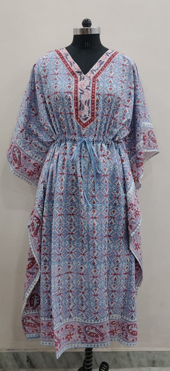 Upgrade your wardrobe with this trending block print kaftan for women, designed to blend traditional craftsmanship with modern style. Featuring beautiful handcrafted block prints, this kaftan brings a timeless ethnic charm that never goes out of fashion.