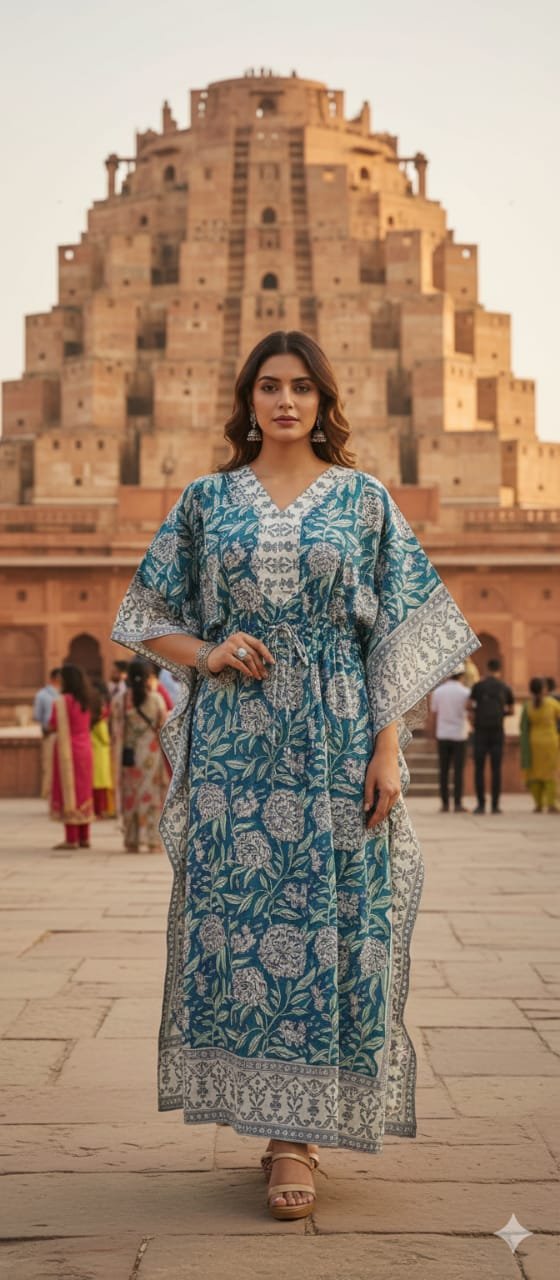 Add effortless elegance to your wardrobe with this beautiful Block Print Kaftan for Women. Designed with traditional block printing techniques, this kaftan showcases artistic patterns that reflect the charm of classic Indian craftsmanship.