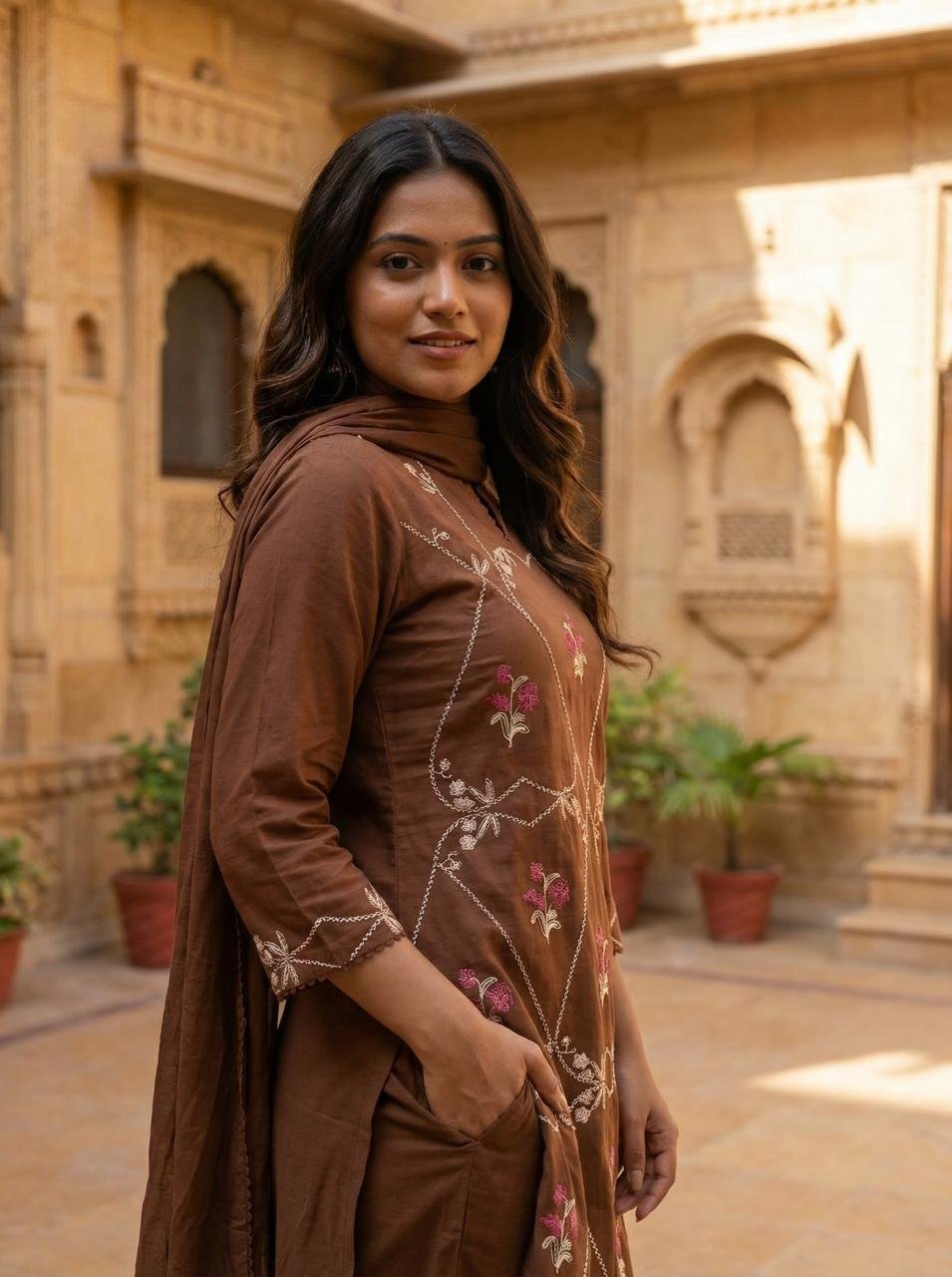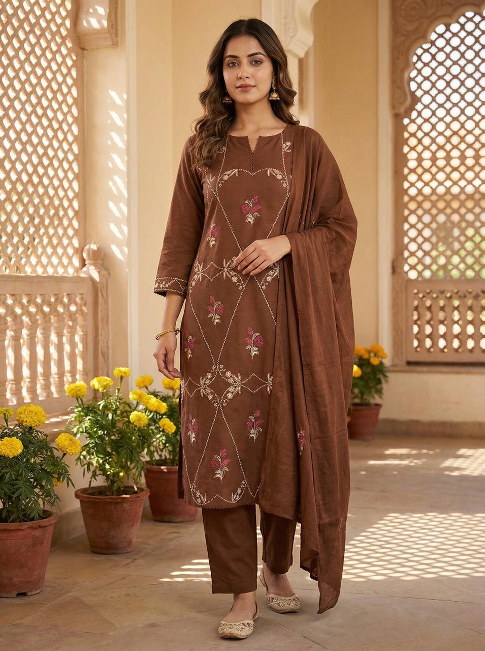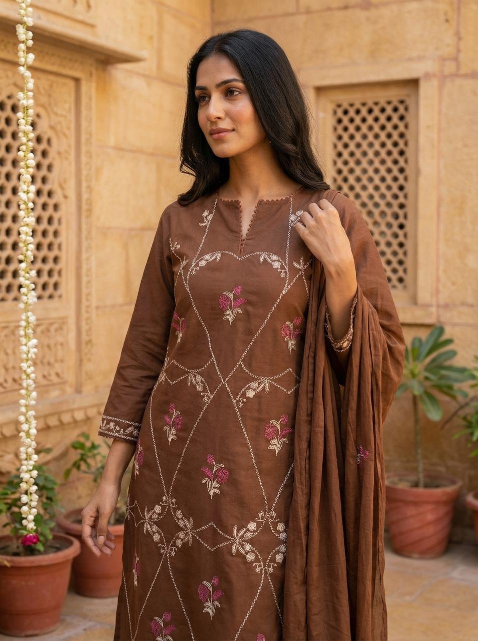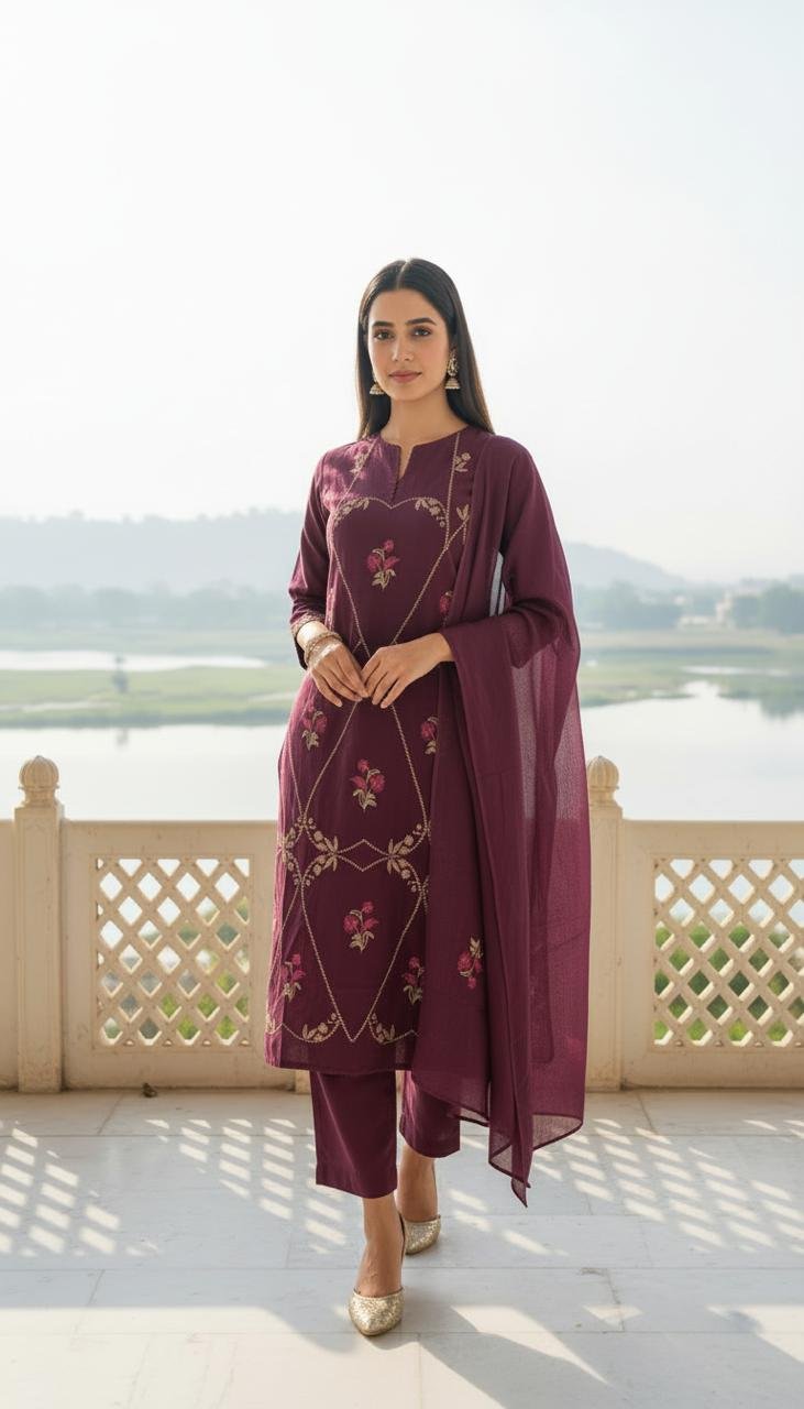 Introducing the Cotton Embroidered Straight Kurti Set, designed for women who love subtle elegance with everyday comfort. Crafted from premium cotton fabric, this outfit features beautiful embroidery on a classic straight-cut design, offering a refined and stylish ethnic look. Its breathable and lightweight feel makes it perfect for daily wear, office styling, and casual outings.