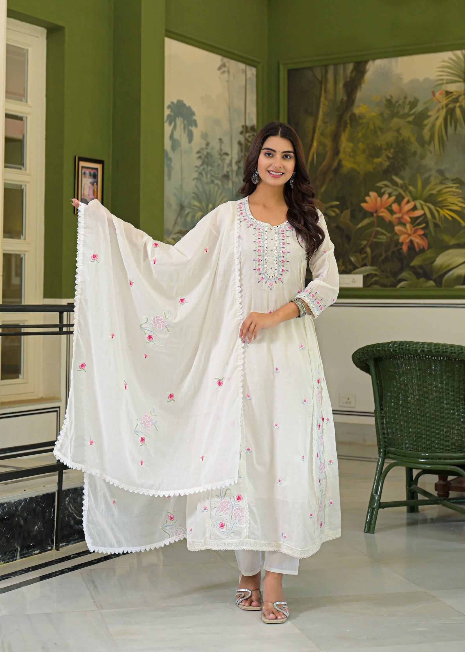 This Cotton Mulmul Anarkali is soft, lightweight, and comfortable for everyday wear. Its elegant design gives a graceful ethnic look, making it perfect for casual wear, office wear, and small gatherings.