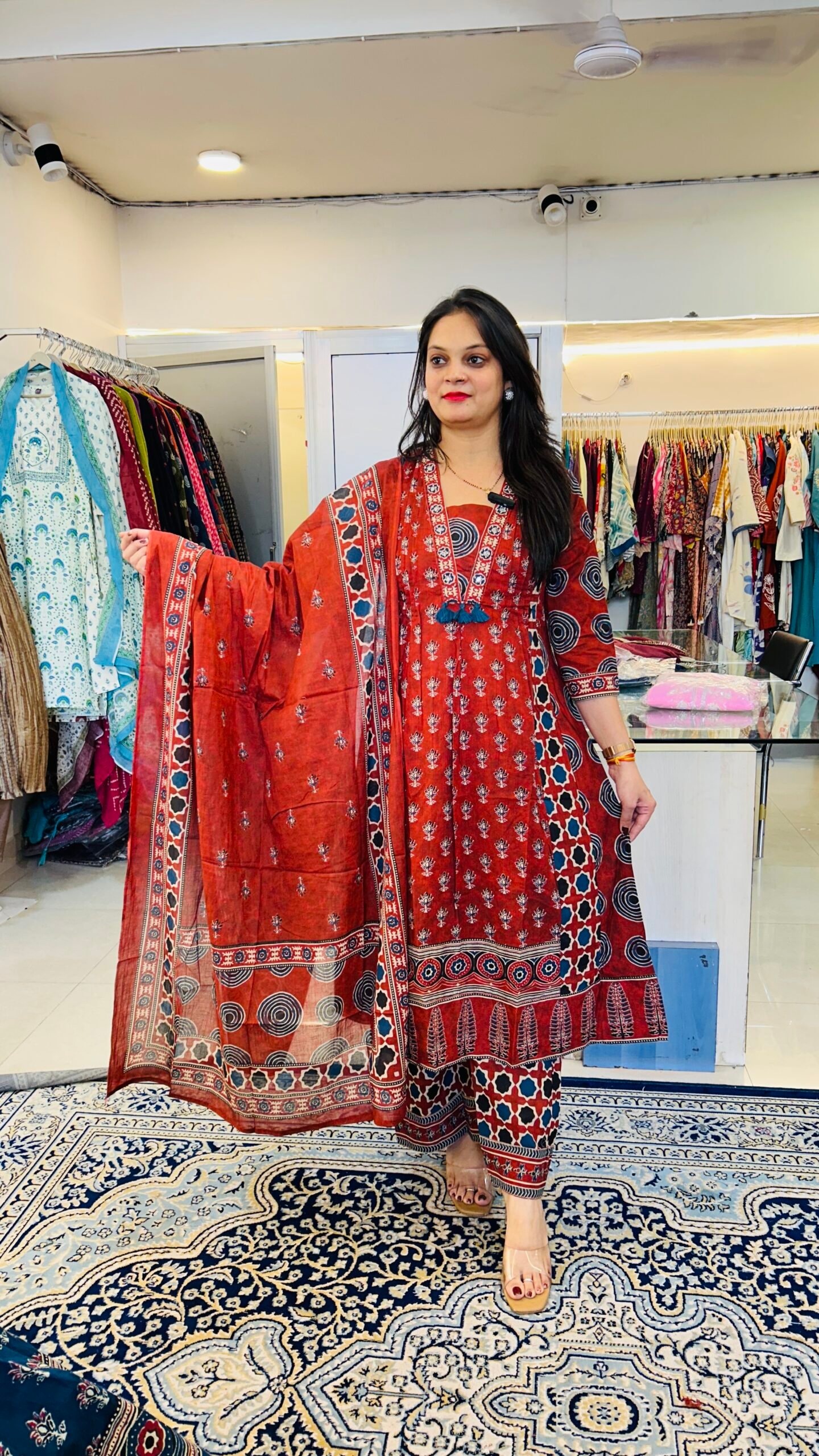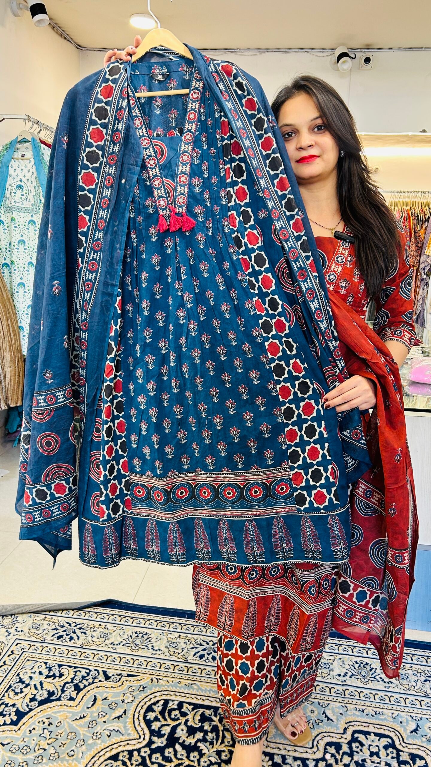 Pure Taj Cotton Ajarak Print AnarkaliPure Taj Cotton Ajarak Print Anarkali