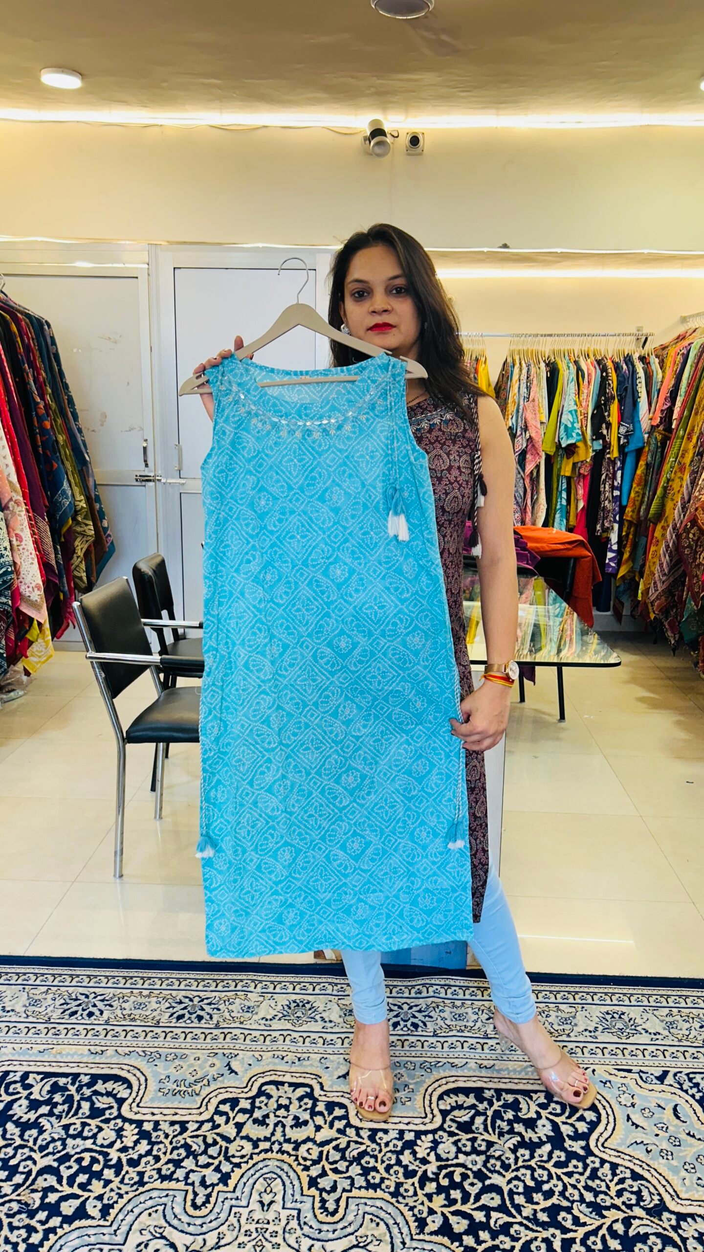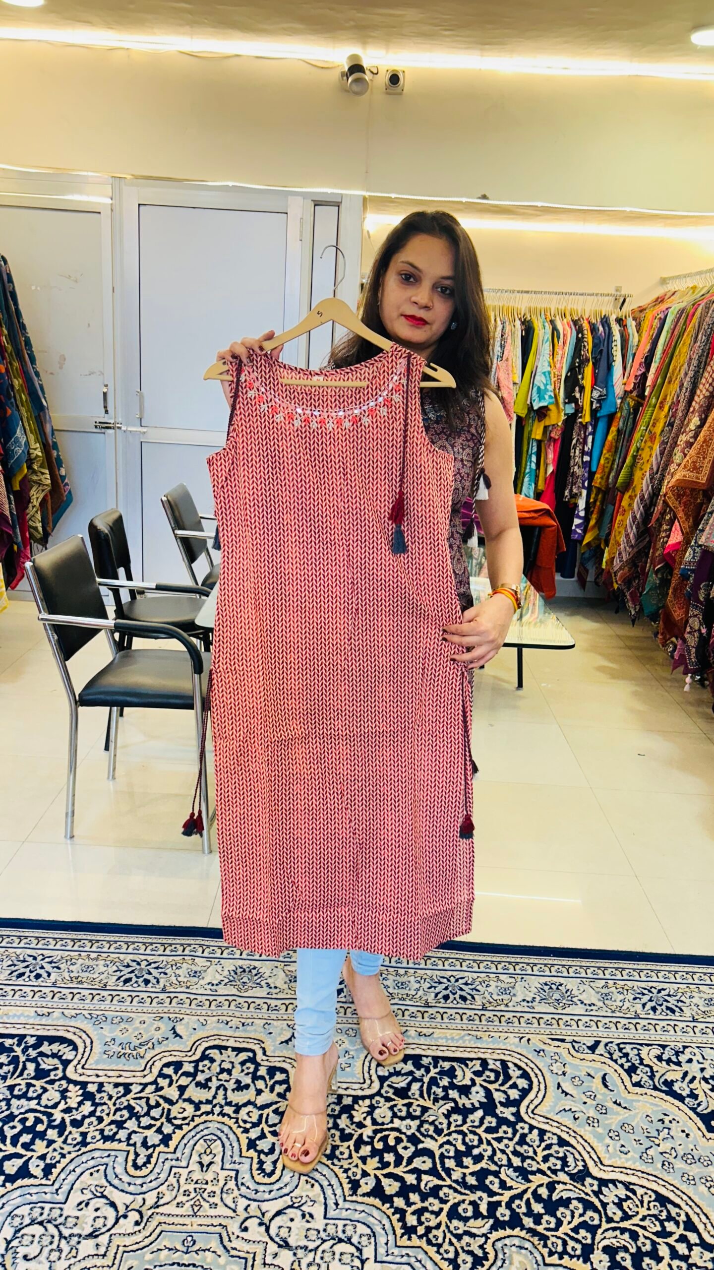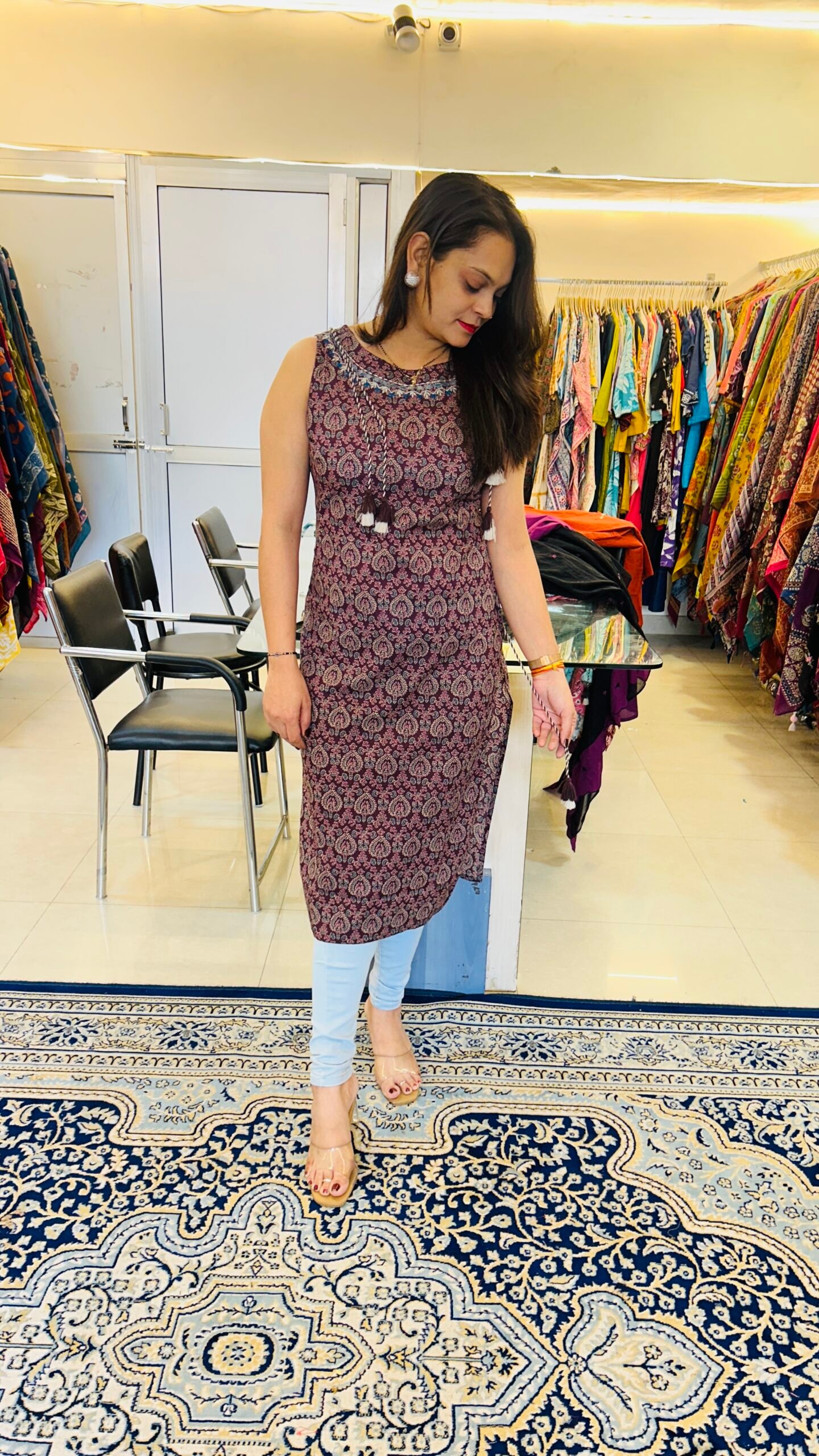 Add effortless elegance to your wardrobe with this Cut Sleeves Straight Kurti, designed for a modern yet traditional ethnic look. The straight silhouette gives a flattering and comfortable fit while the sleeveless design adds a trendy and contemporary touch to the outfit.