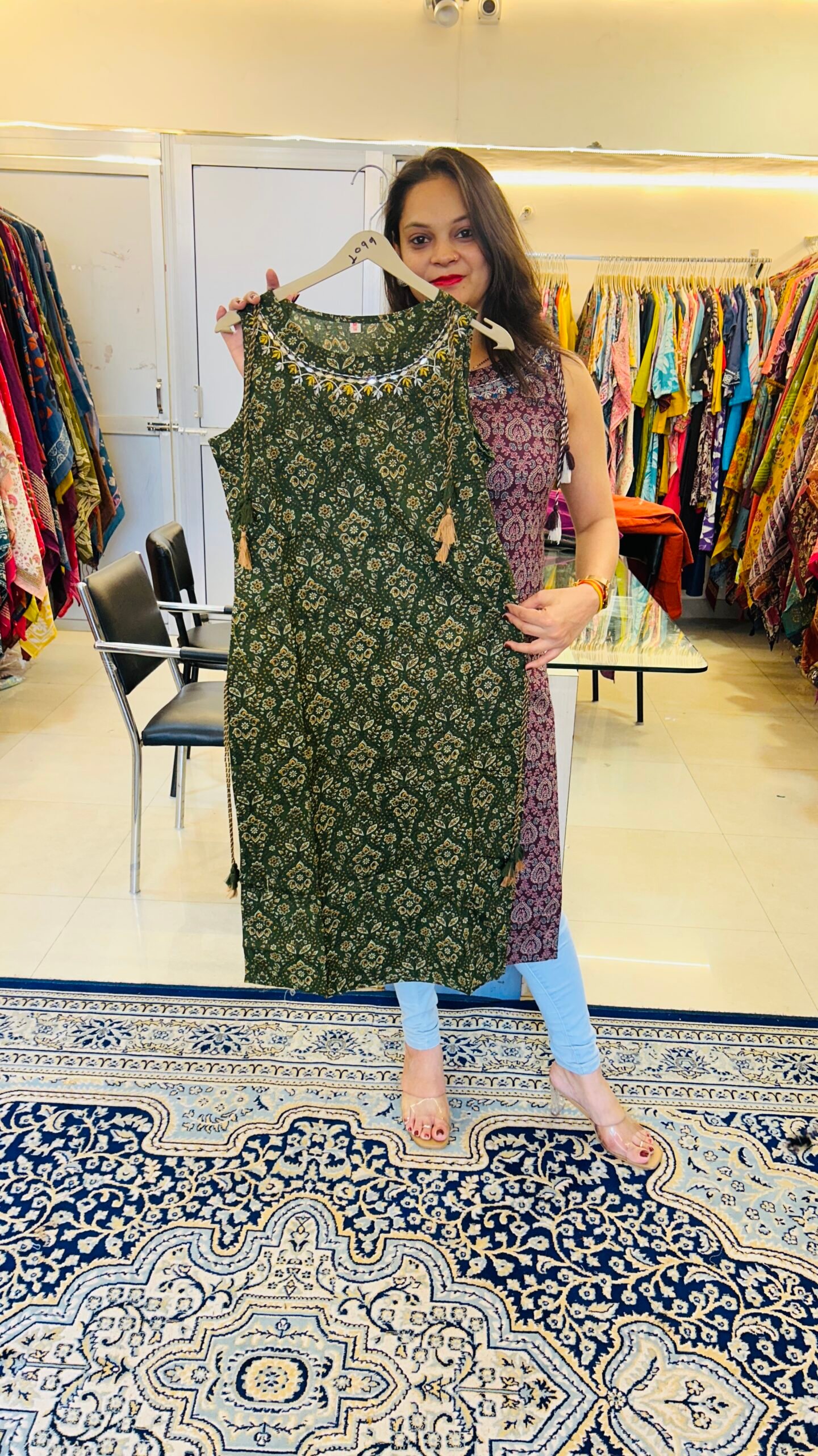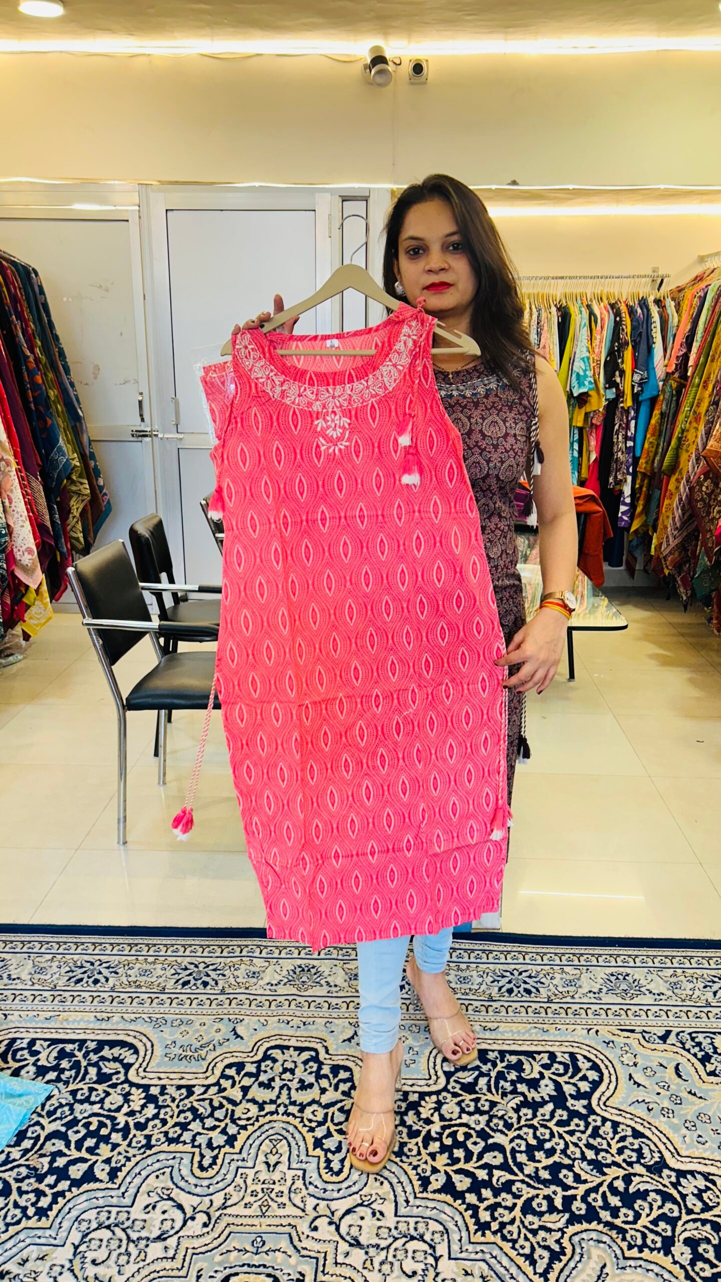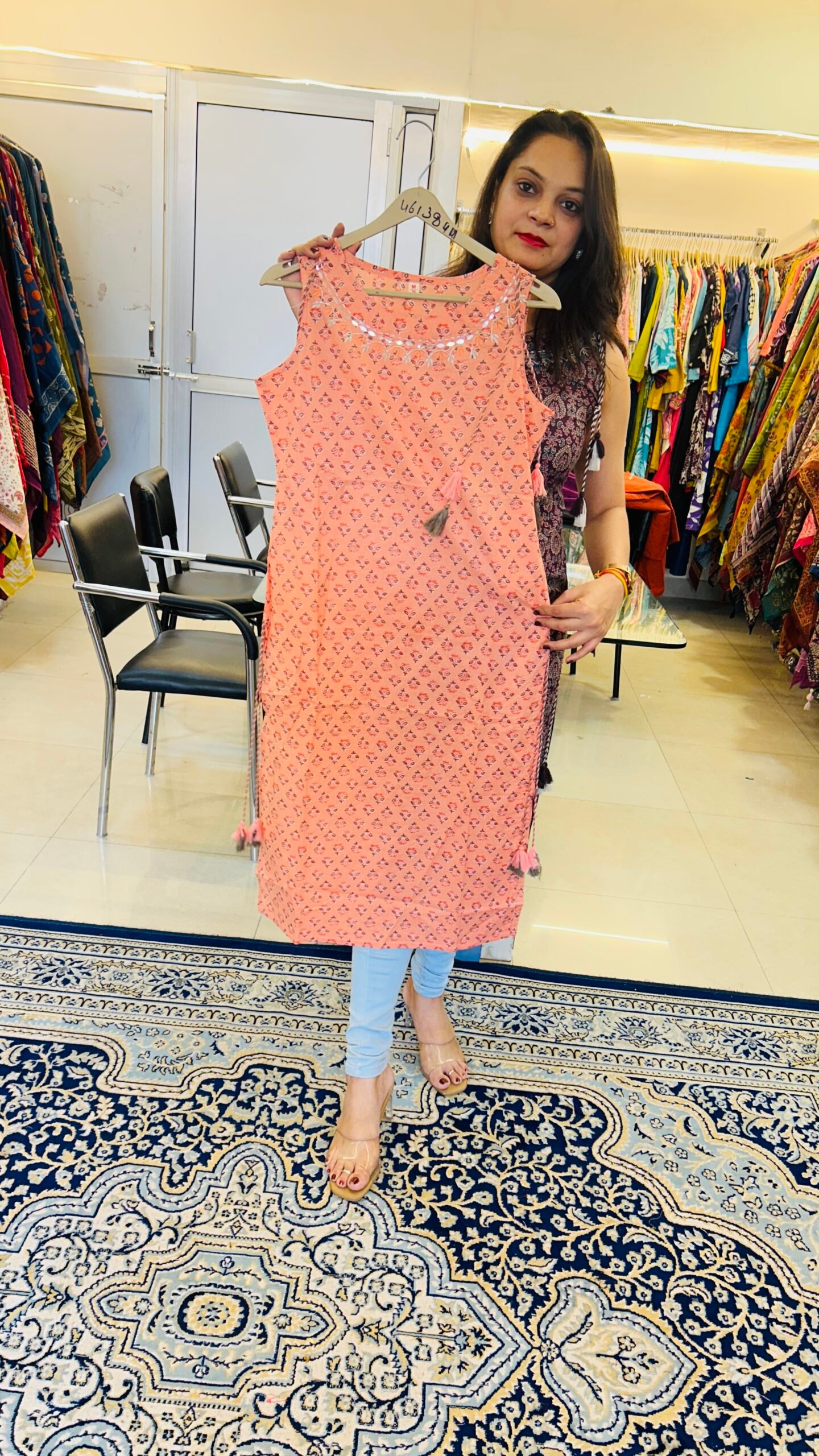 Add effortless elegance to your wardrobe with this Cut Sleeves Straight Kurti, designed for a modern yet traditional ethnic look. The straight silhouette gives a flattering and comfortable fit while the sleeveless design adds a trendy and contemporary touch to the outfit.