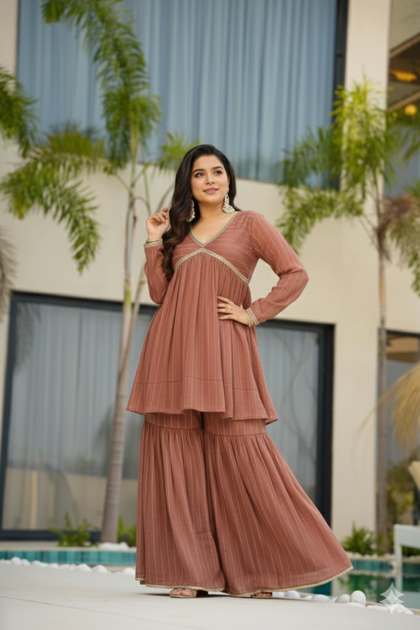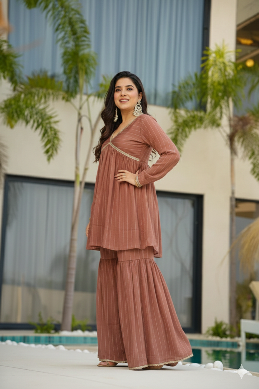 Be the first to review “Designer Printed Kurta Sharara Set with Lace Work”
