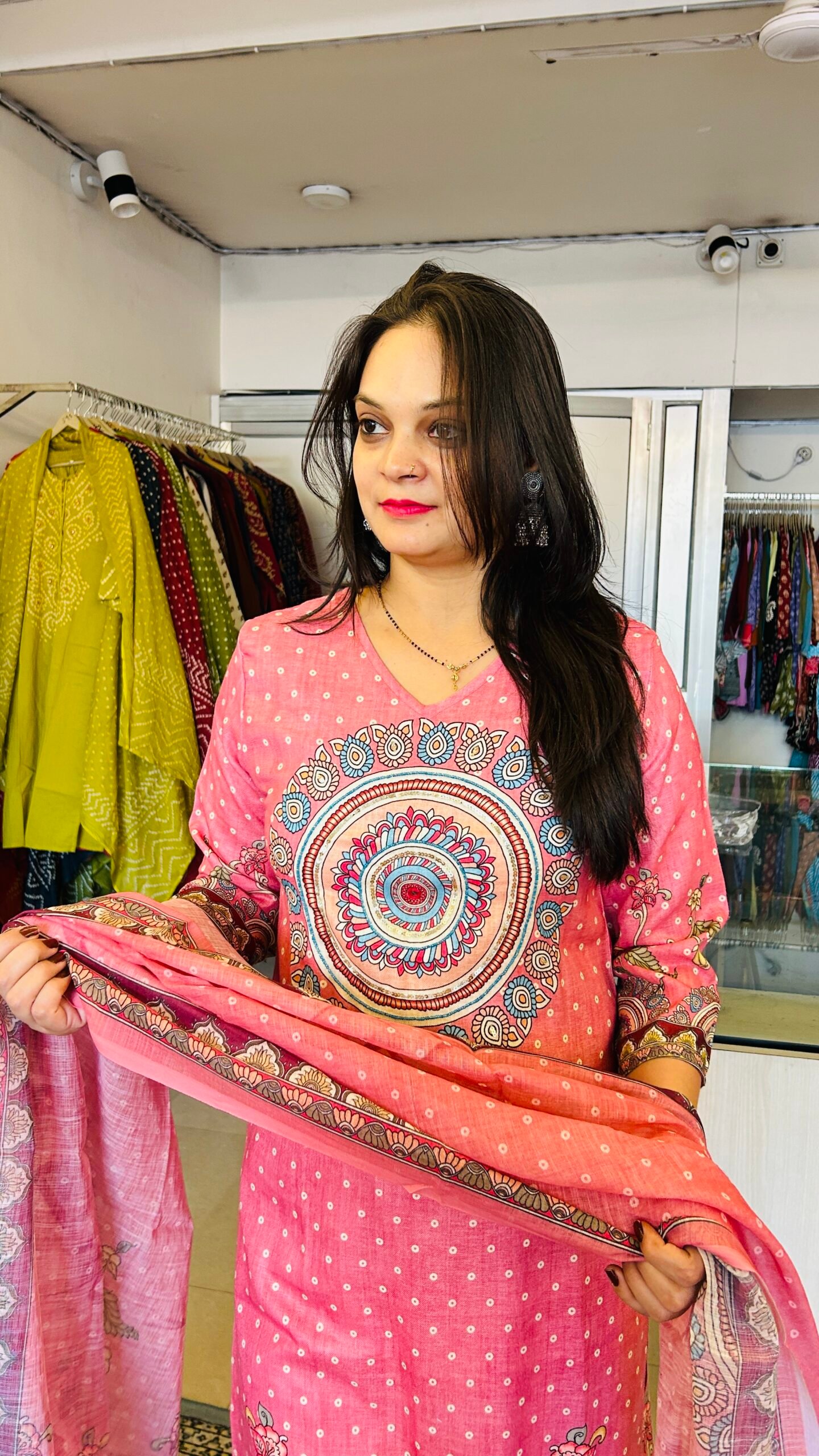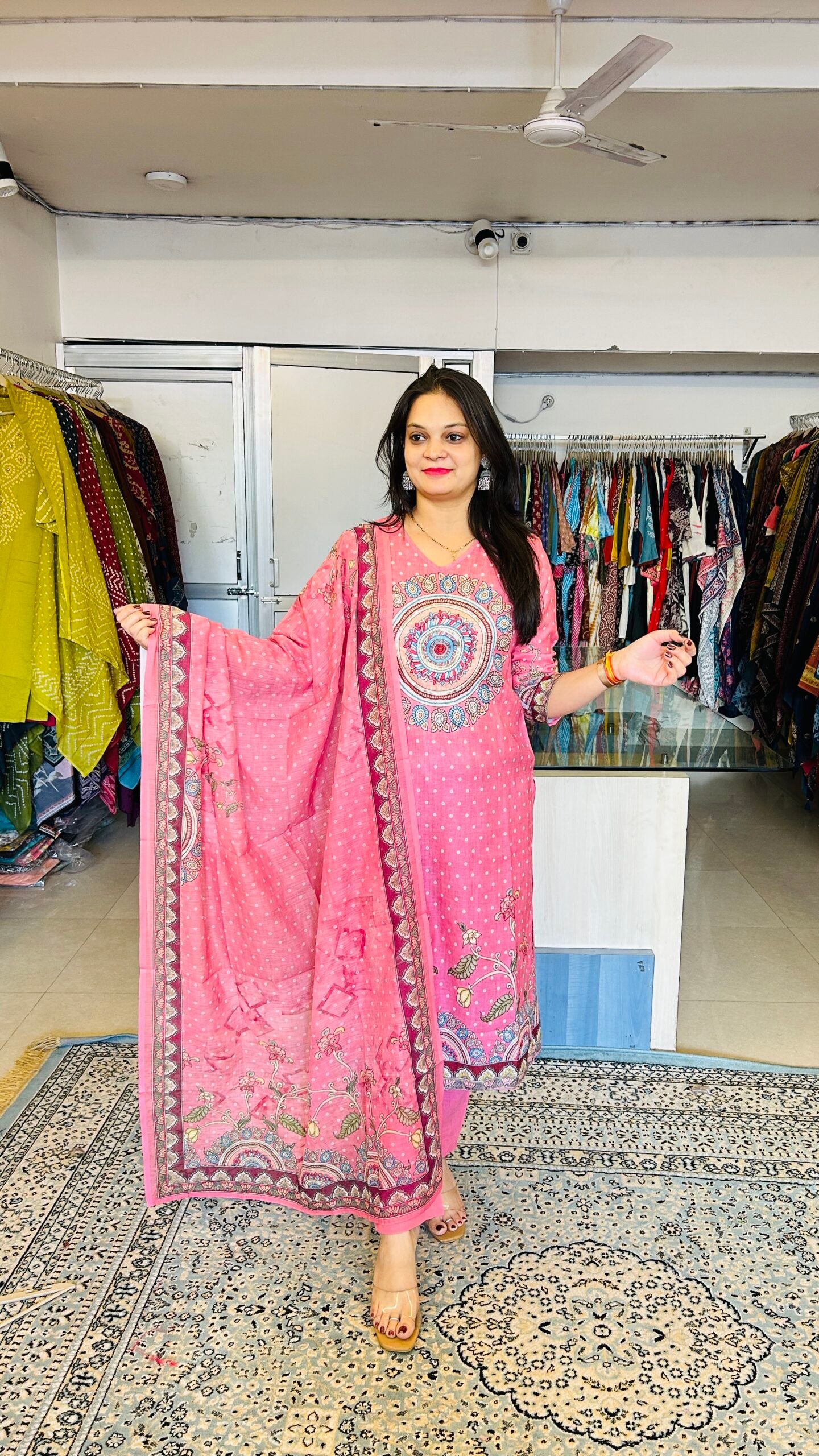 Elevate your ethnic wardrobe with this elegant Muslin Cotton Silk Straight Suit Set, designed to bring together comfort and timeless style. Crafted from premium muslin cotton silk fabric, this outfit offers a soft, lightweight feel with a graceful and sophisticated look.
