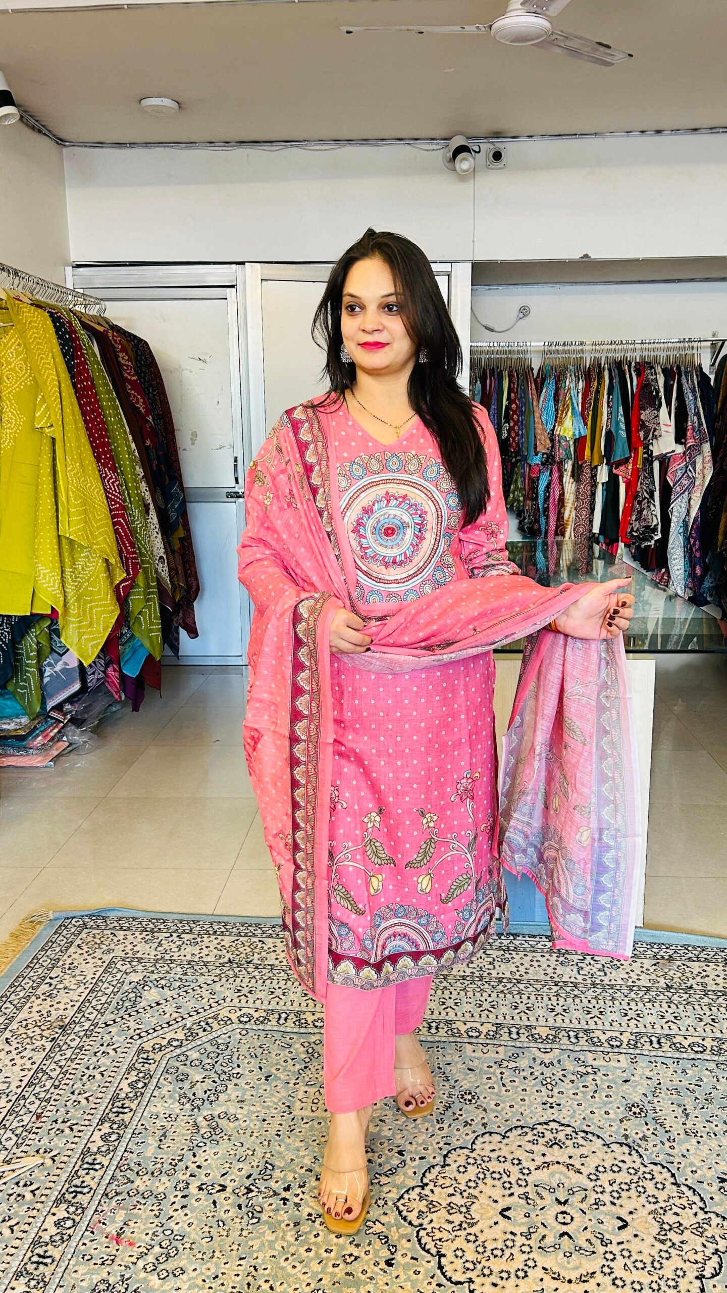 "Upgrade your ethnic wardrobe with this beautiful muslin suit set"
