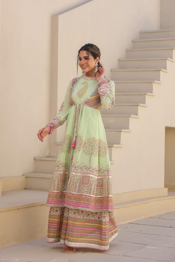 Introducing the New Launch Mal Cotton Gown, designed to bring together elegance and comfort. Made from premium Mal cotton fabric, this gown offers a soft, breathable feel with a graceful flow. Its stylish design creates a beautiful and elegant look, making it perfect for festive occasions, casual gatherings, and special events.