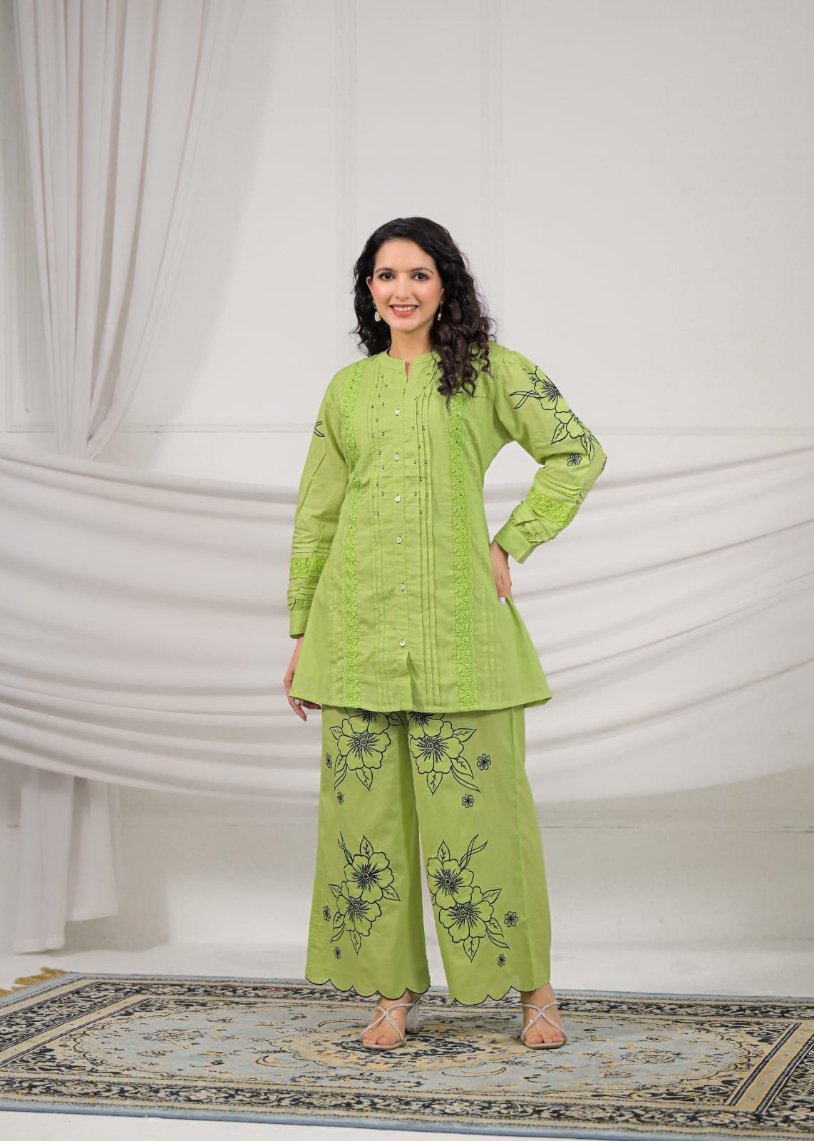 Add a touch of elegance to your everyday style with this beautiful Cotton Embroidered Co-Ord Set for Women. Crafted from soft and breathable cotton fabric, this outfit offers exceptional comfort while maintaining a stylish and sophisticated look.