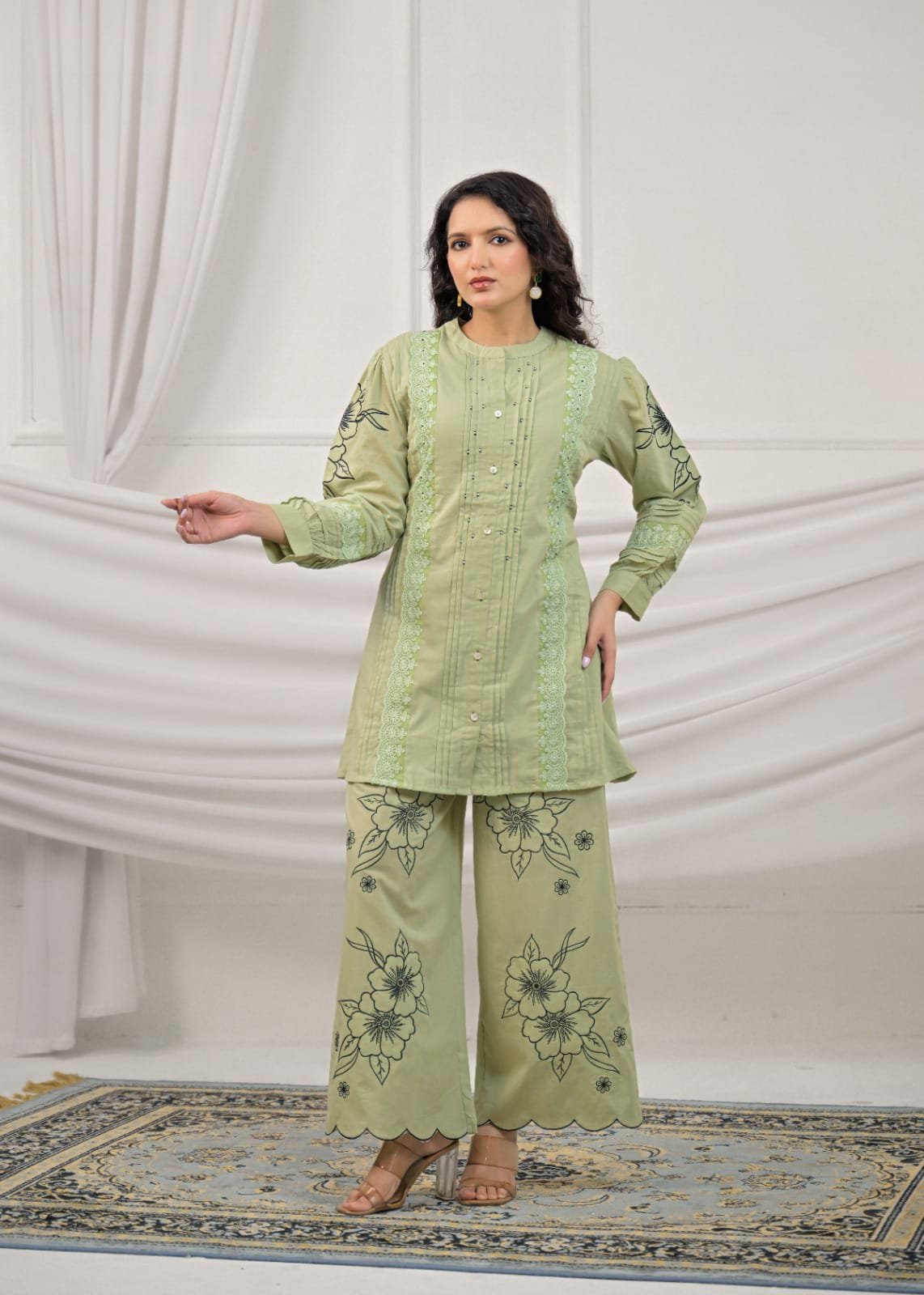 Be the first to review “Elegant Cotton Embroidery Co-ord Set”