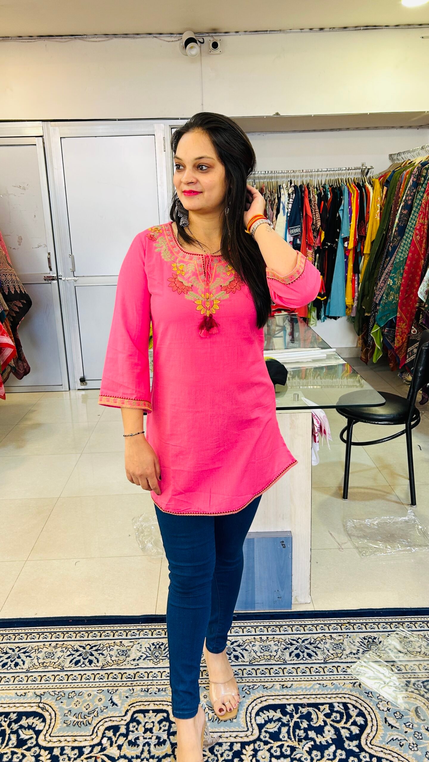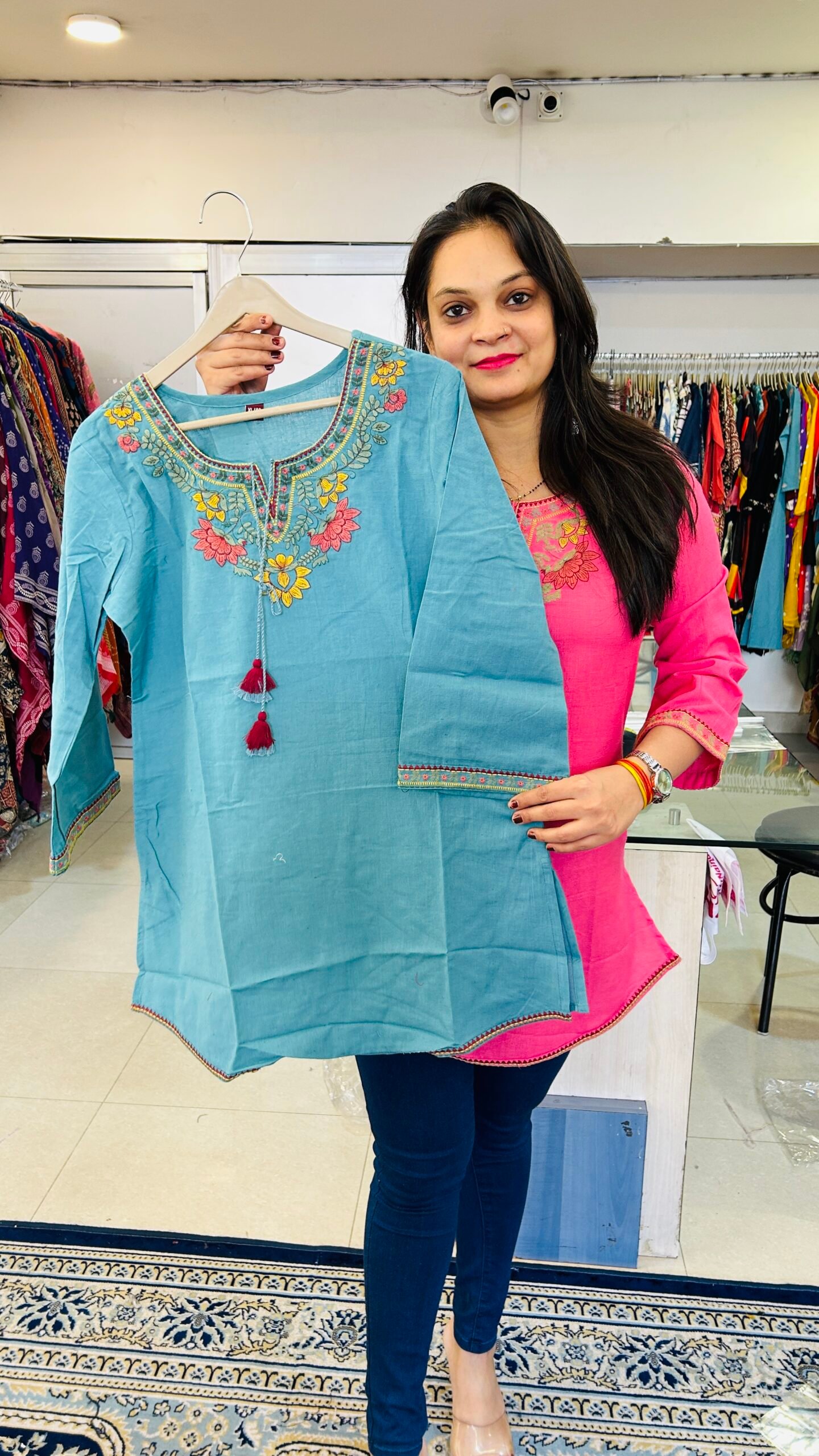This short kurti is designed with a modern silhouette, making it incredibly easy to style with trousers, leggings, or your favorite pair of denims. It is a versatile must-have for anyone seeking an effortless aesthetic ethnic look.