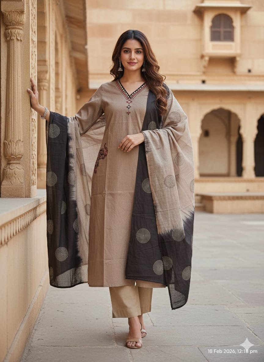 Pure Taj Cotton A-Line Suit Set for WomenPure Taj Cotton A-Line Suit Set for Women